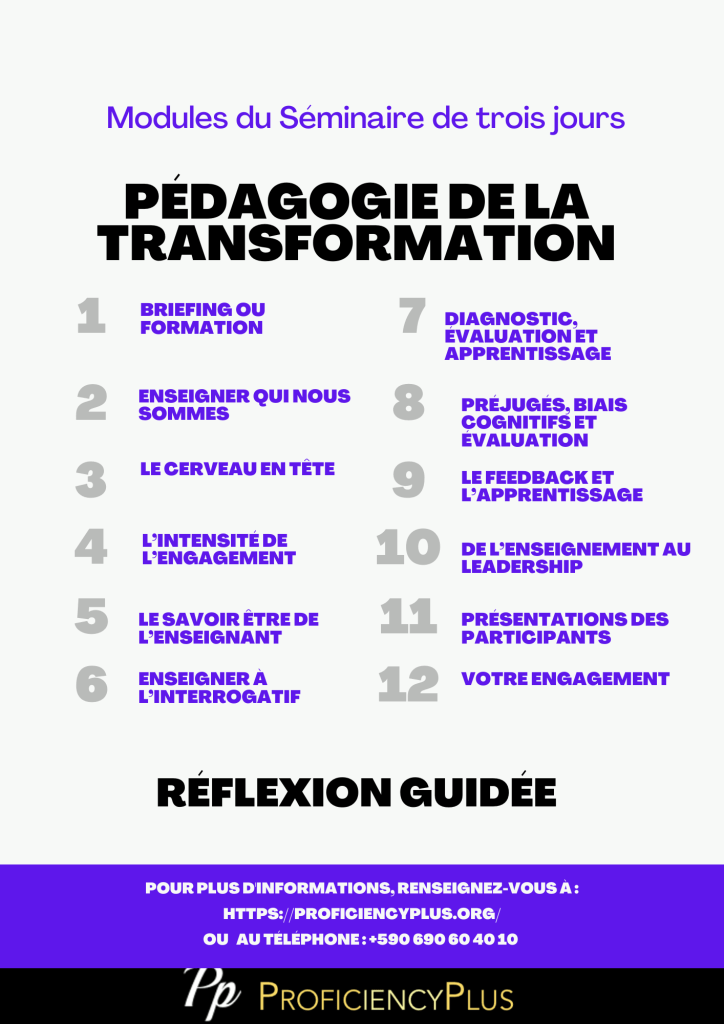 L’apprentissage a pour finalité la transformation de l’apprenant. Comment suscite-t-on un changement transformationnel ? Cette formation vous aidera à rendre vos cours plus efficaces, plus excitants, à maintenir les cerveaux de vos étudiants en ébullition, inspirés, en profonde réflexion, et à inspirer chez eux la production de résultats au-delà de toutes attentes.